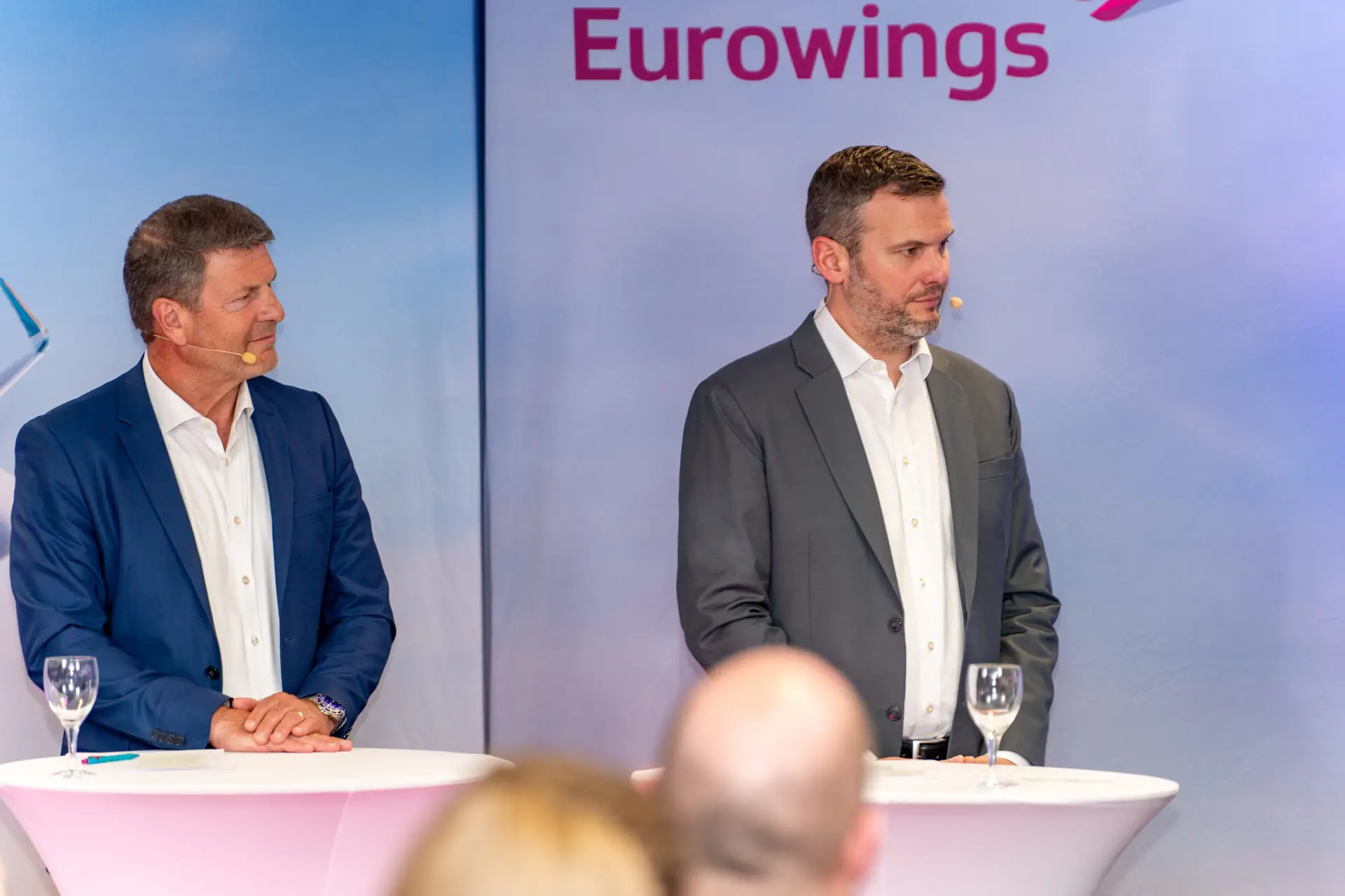 Jens Bischof (CEO & CCO) und Edi Wolfensberger (COO) präsentierten gemeinsam aktuelle Entwicklungen, Zahlen und Visionen für die Zukunft von EUROWINGS. Die beiden Führungskräfte standen im Zentrum des Townhall-Formats und adressierten direkt das gesamte Team – über 5.000 Mitarbeitende.