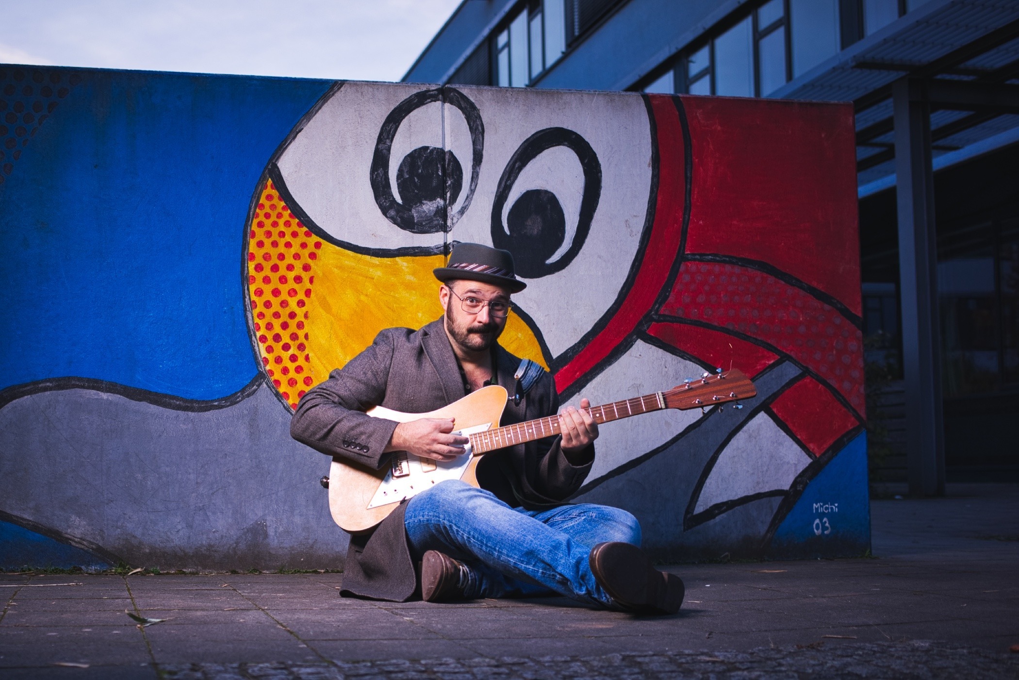 Die Idee war, durch einen Stadtteil zu ziehen und die Atmosphäre für eine spontane Street Fotografie Session zu nutzen. Das Ergebnis sind keine klassischen Promofotos, sondern ehrliche Charakterportraits, die Bogis Energie und seine Leidenschaft für die Musik widerspiegeln.